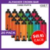 Introducing the Al Fakher 15000 Puffs Crown Bar Pro Max, a groundbreaking disposable vape crafted for dedicated enthusiasts. With a remarkable capacity of 15,000 puffs, this device provides extended, uninterrupted vaping enjoyment that can last up to a year.