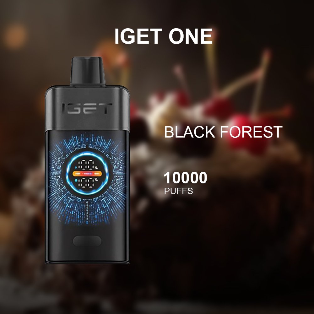 A dessert-inspired vape from IGET ONE offering up to 10,000 puffs of rich Black Forest flavor in a sleek, long-lasting disposable.