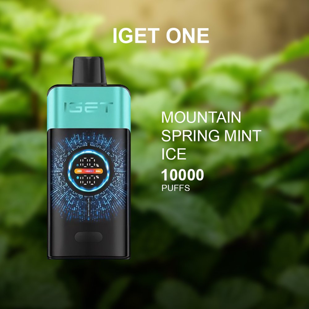 A crisp and refreshing vape from IGET ONE, offering up to 10,000 puffs of cool mountain spring water infused with icy mint freshness.