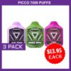 A value-packed 5-pack of PICCO disposable vapes, each offering 7000 puffs. Ideal for regular vapers looking for reliable performance and flavor variety.